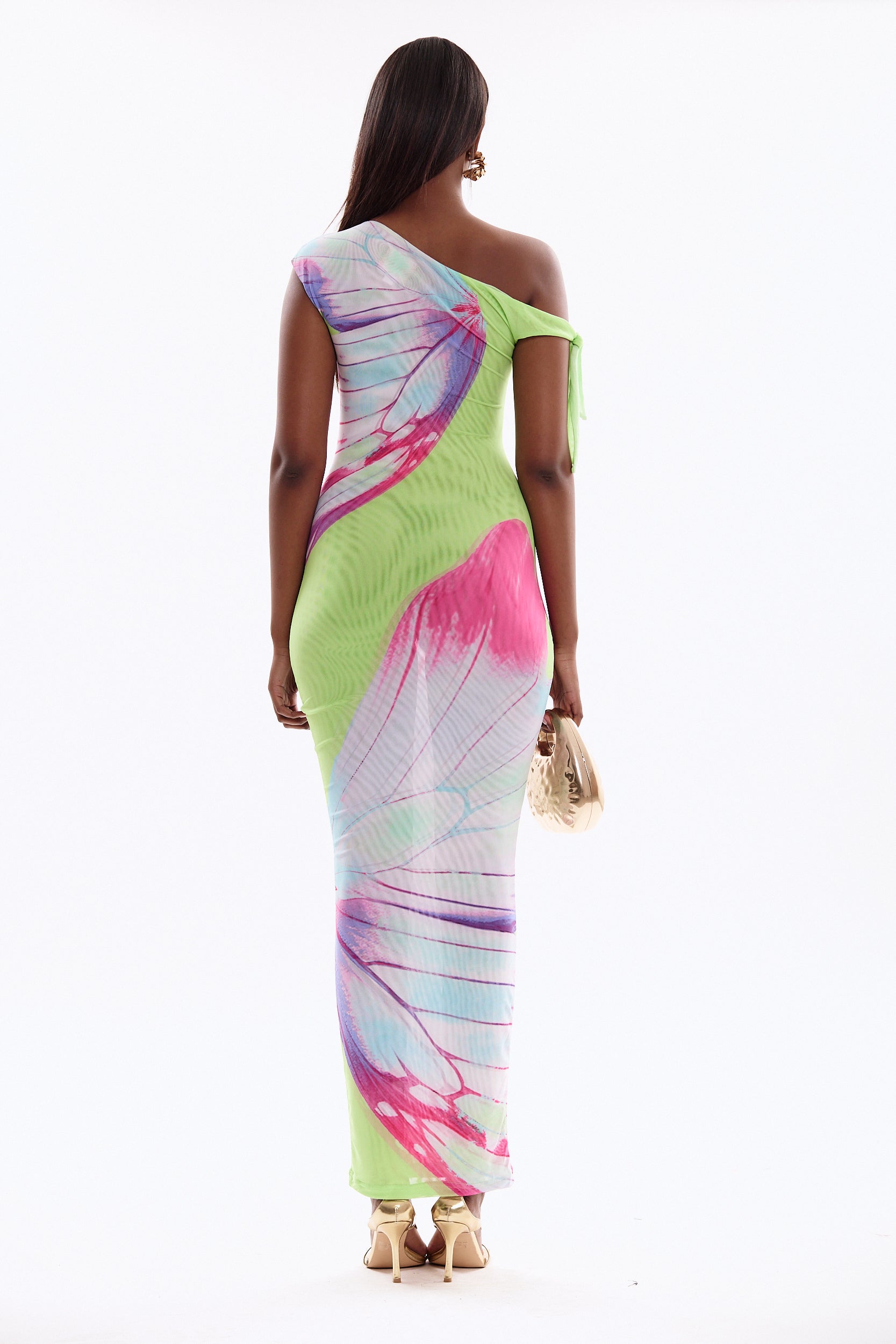 The Jenel Dress comes in a pastel lime with the Gbemi Summer Butterfly placement print. The dress is made of double lined mesh to hold you in all the right places, making you feel your confident best. The dress has stretch.